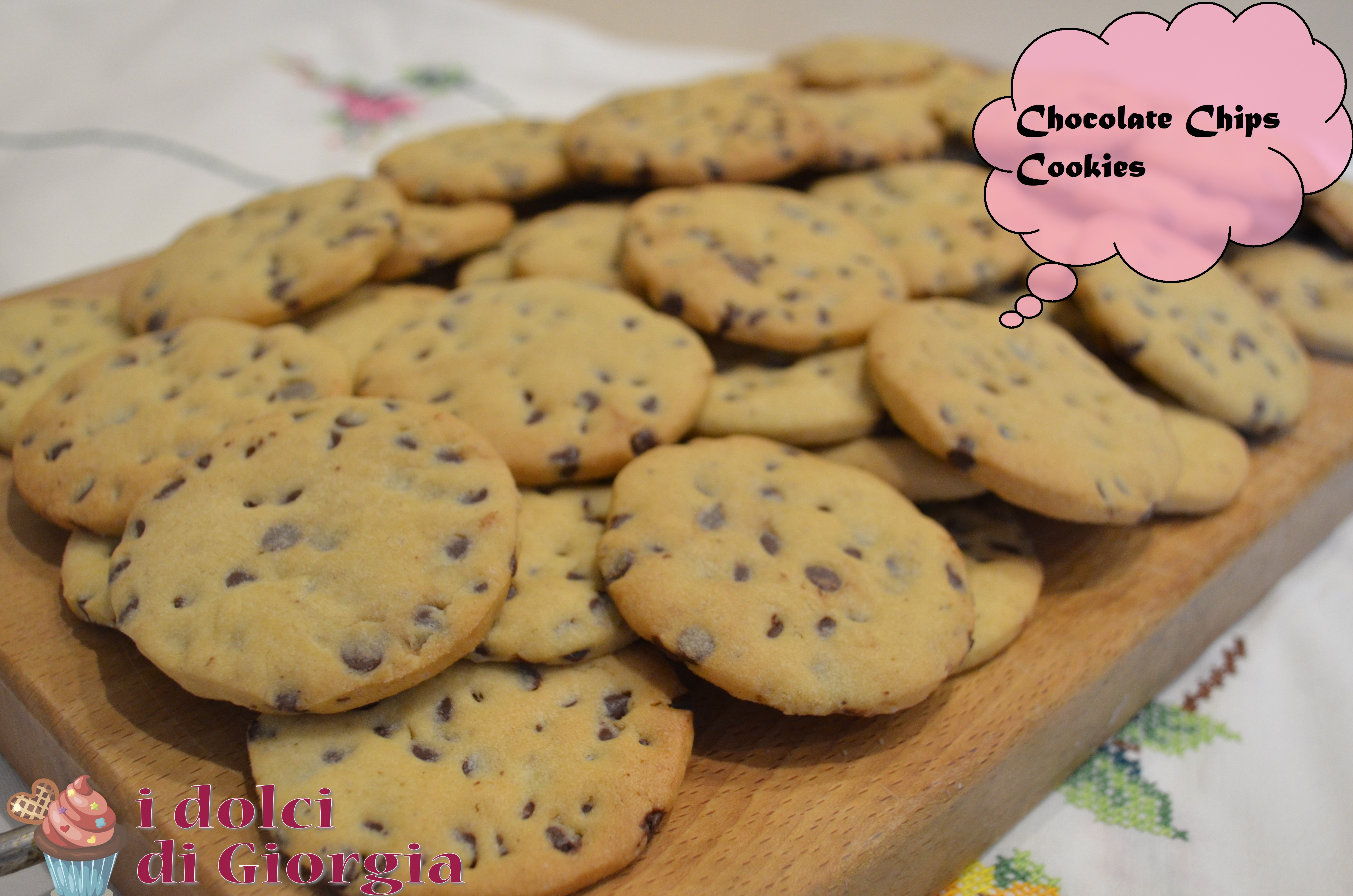 I Chocolate Chips Cookie sono dei biscotti originari americani con gocce di cioccolato. L’inventrice Ruth Graves intorno al 1938 aggiunse dei pezzi di cioccolato ai biscotti. Gli ingredienti base che compongono questi biscotti sono il burro e lo zucchero che può essere sia bianco ma anche di canna con l’aggiunta di scaglie di cioccolato e vaniglia,ma si possono aggiungere altri ingredienti come le noci, si possono realizzare innumerevoli varianti, con diversi tipi di cioccolato, con la frutta secca e con il burro di arachidi. Qui si trova la ricetta classica ma nel blog trovate anche alcune varianti.